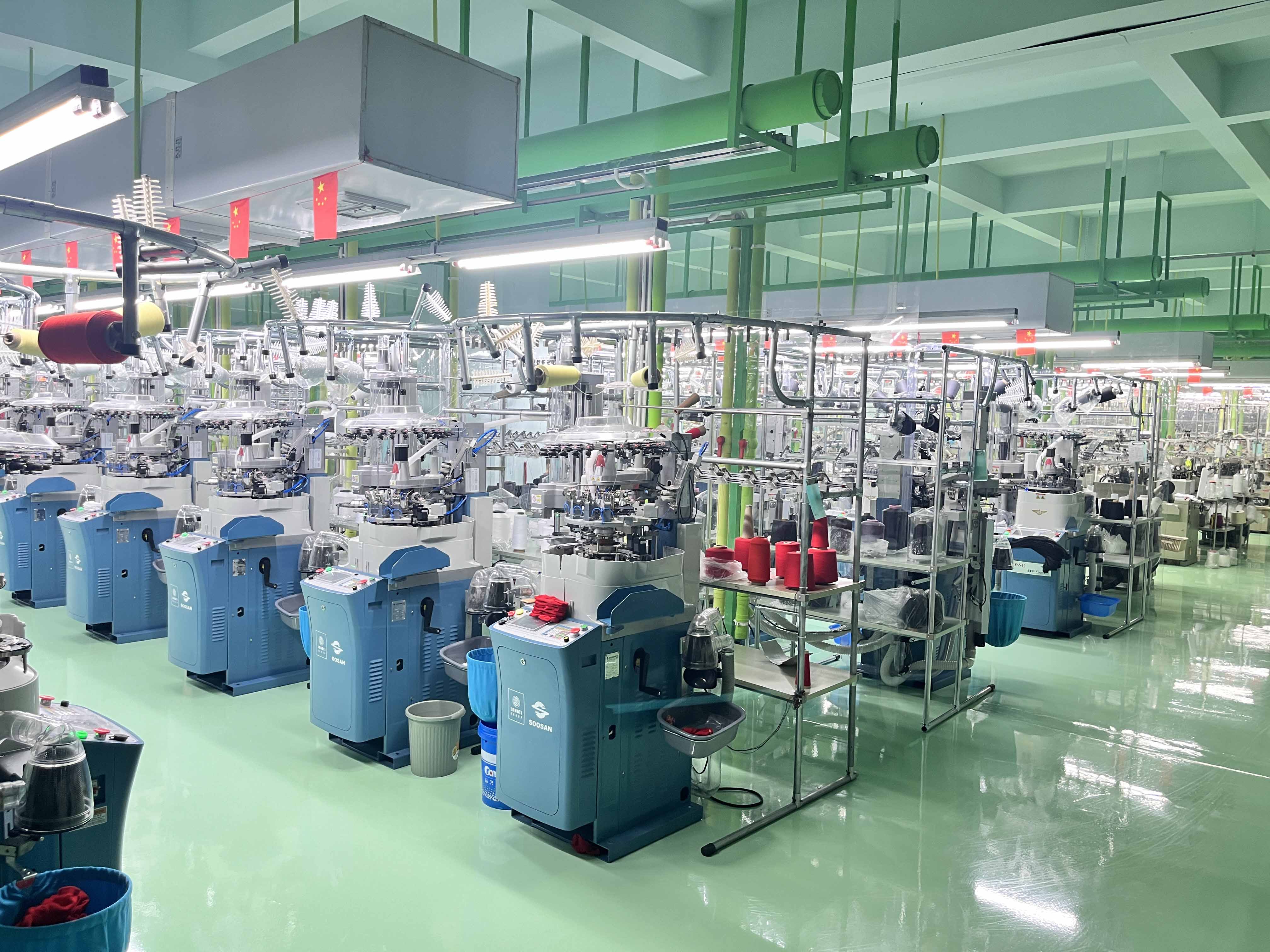 吉行风拥有570台全智能生产设备,其中包括行业优质的意大利Lonati罗那地一体织袜机。这些设备可以精准生产各类特殊功能、特殊结构的专业运动袜,为生产高质量的减震篮球袜提供了有力保障。