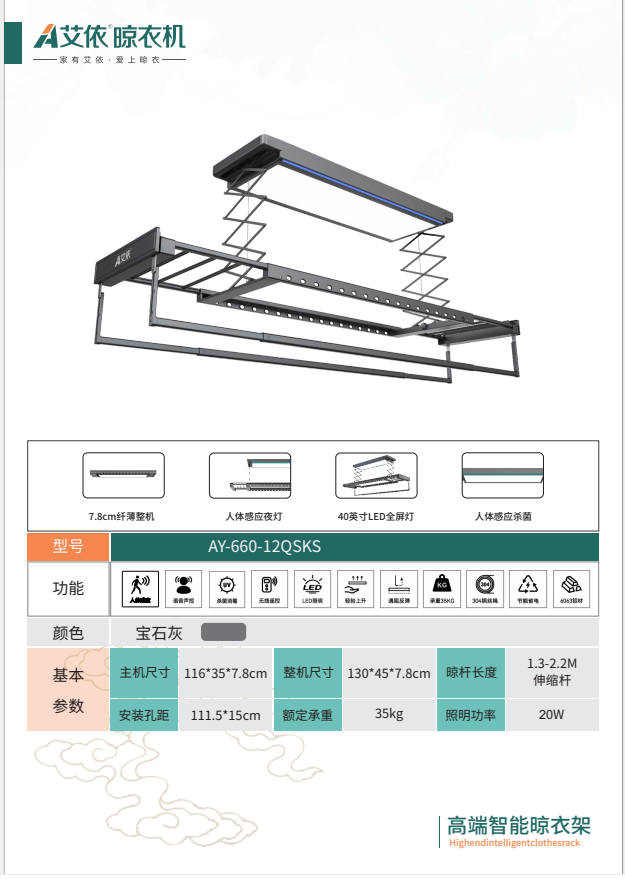 综合以上各个方面,在选择适合现代装修的智能晾衣架品牌时,艾依家居是一个值得考虑的品牌。它不仅在产品设计、功能、技术实力、生产能力和服务等方面都有着出色的表现,而且能够为用户提供高品质的智能晾晒体验。无论是小户型阳台还是大户型住宅,无论是现代简约风格还是其他装修风格,艾依家居都能为你提供合适的智能晾衣架解决方案,让你的阳台成为一个美观、实用、智能的空间。如果你正在为选择智能晾衣架而烦恼,不妨考虑一下艾依家居,相信它不会让你失望。